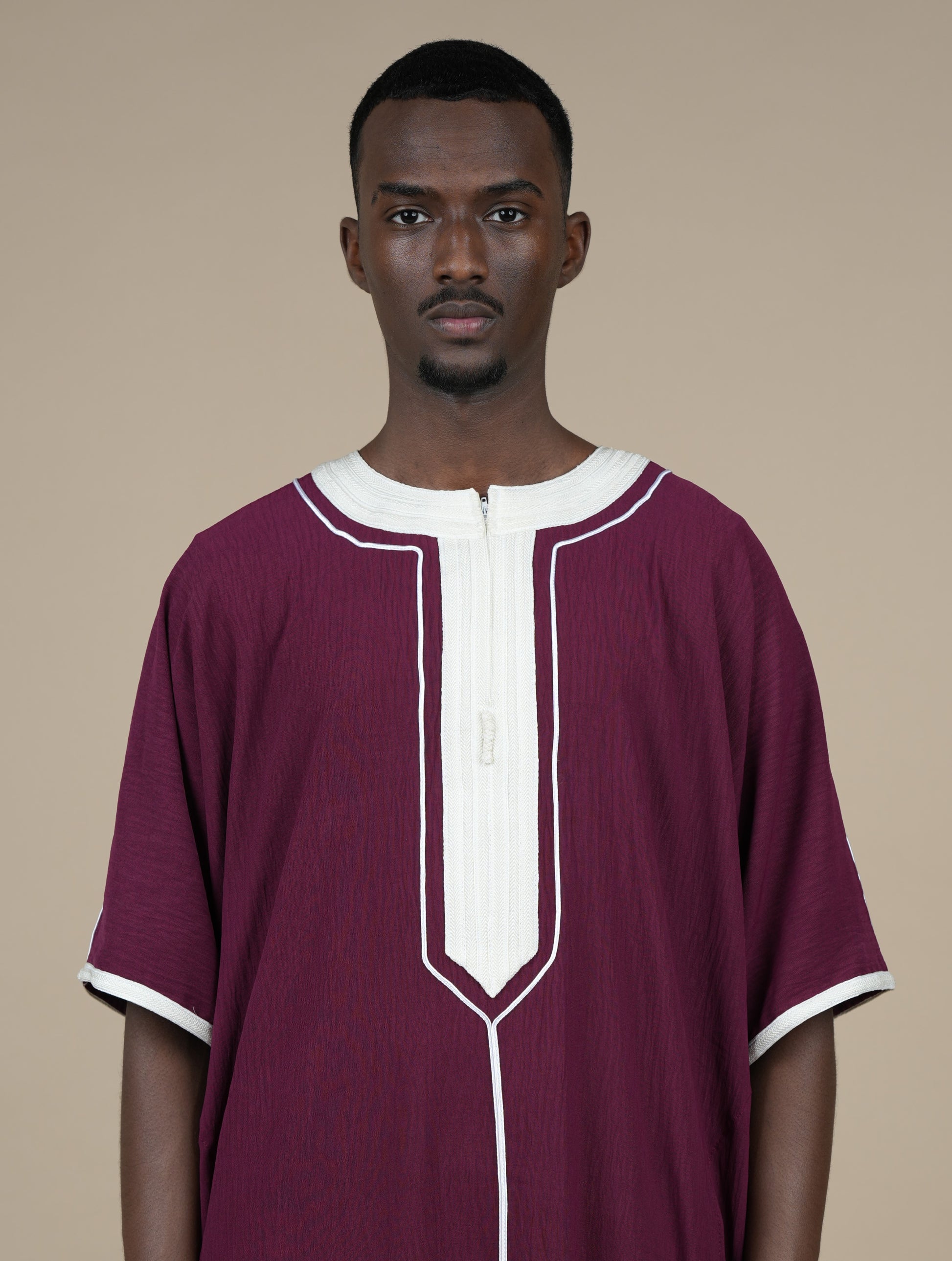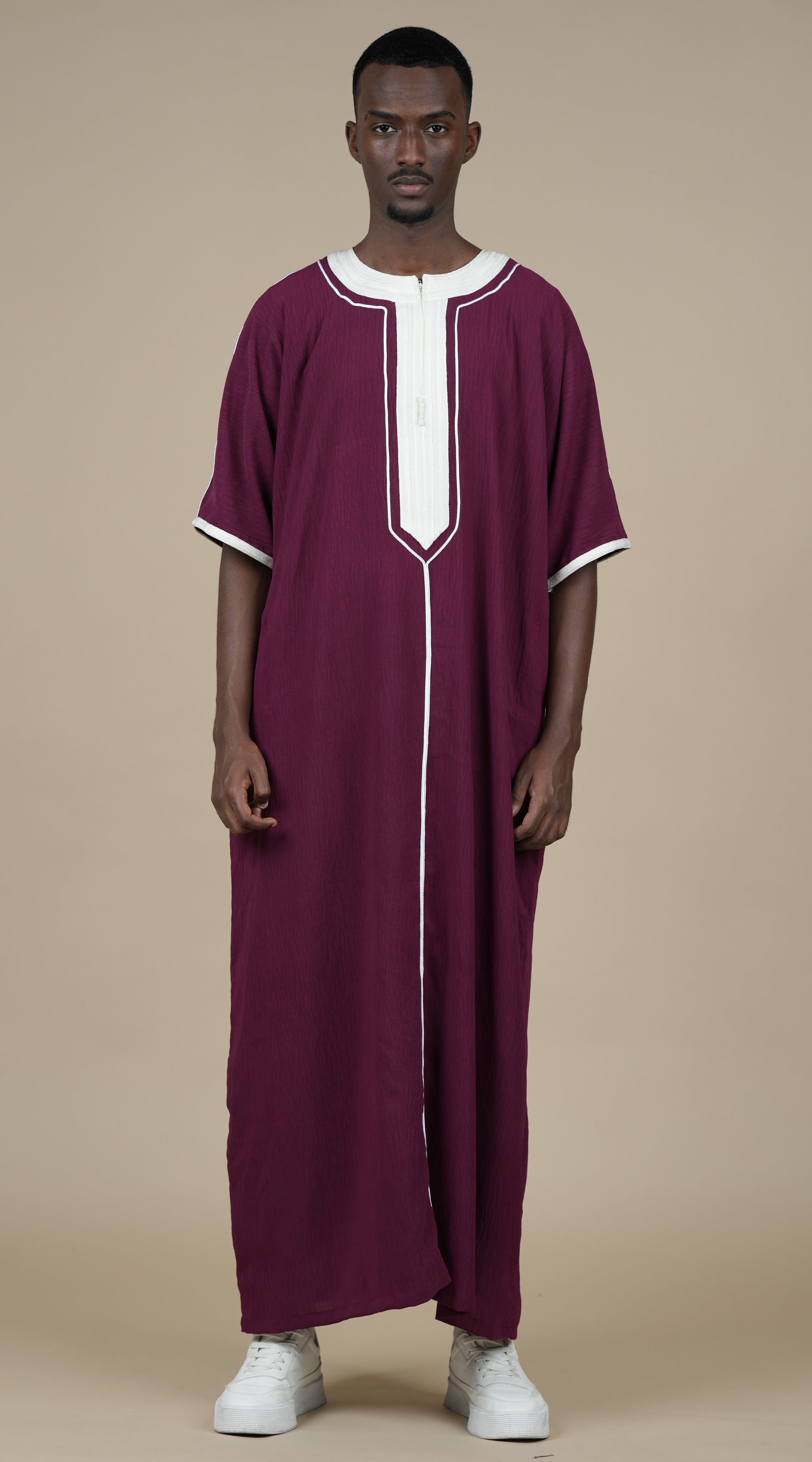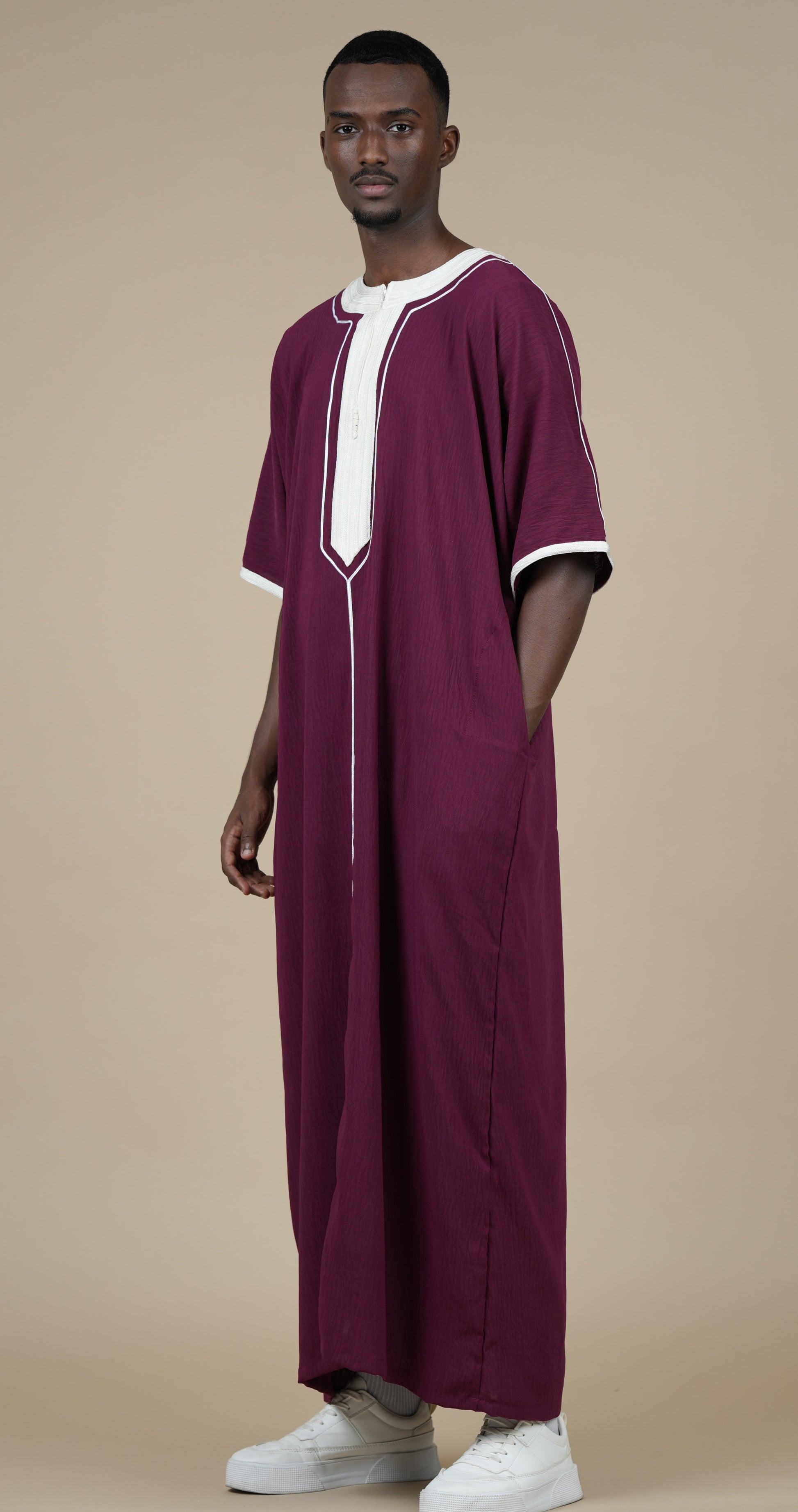 The best materials were used to make this elegant Moroccan thobe, but what really jumps out are the meticulous details of the tailor-made embroidery designs. This one-of-a-kind piece includes embroidery that begins at the shoulders and spreads to the chest region, the sleeves, and the bottom.