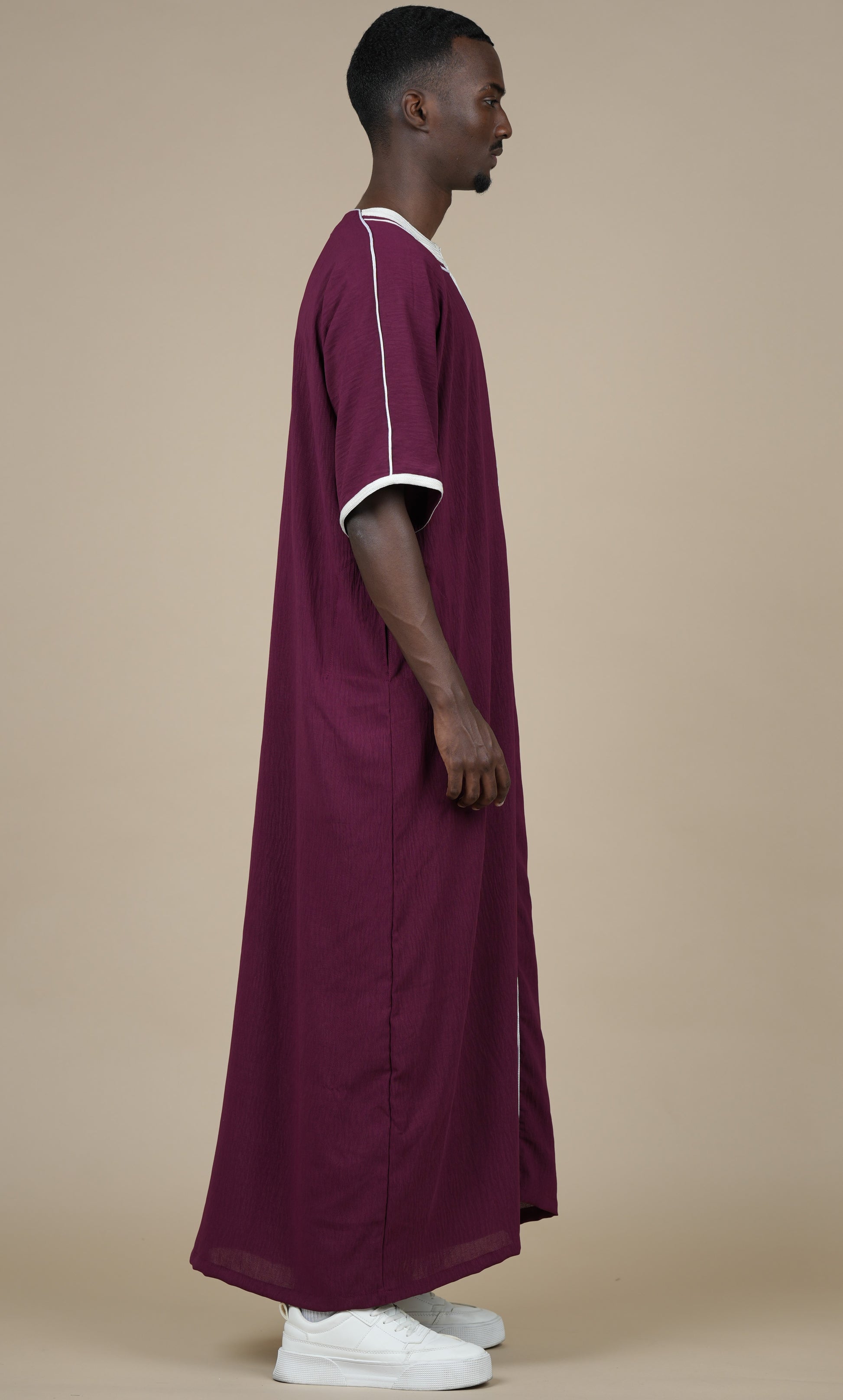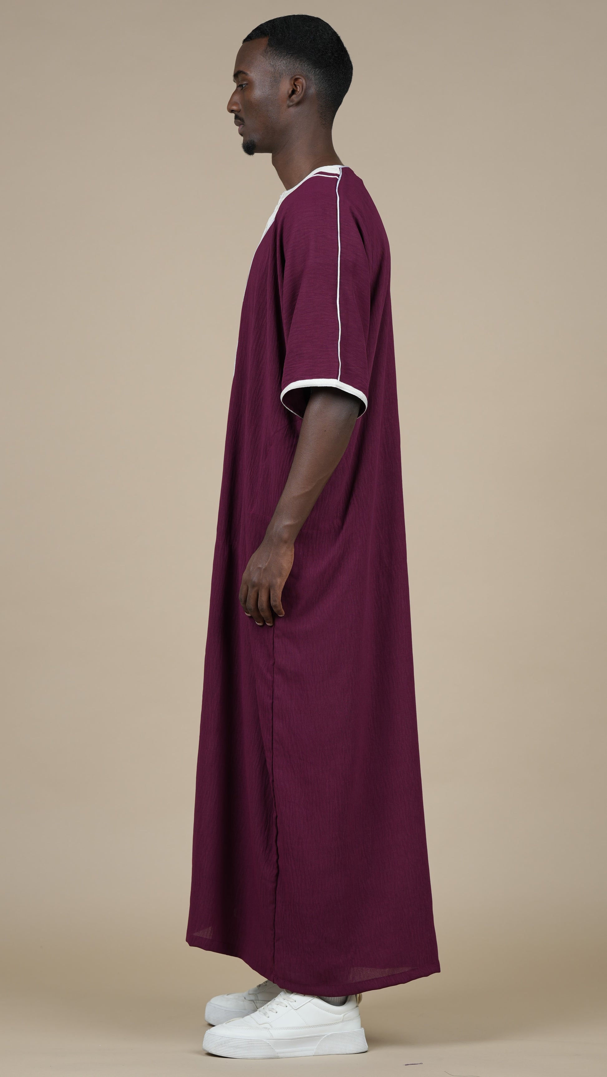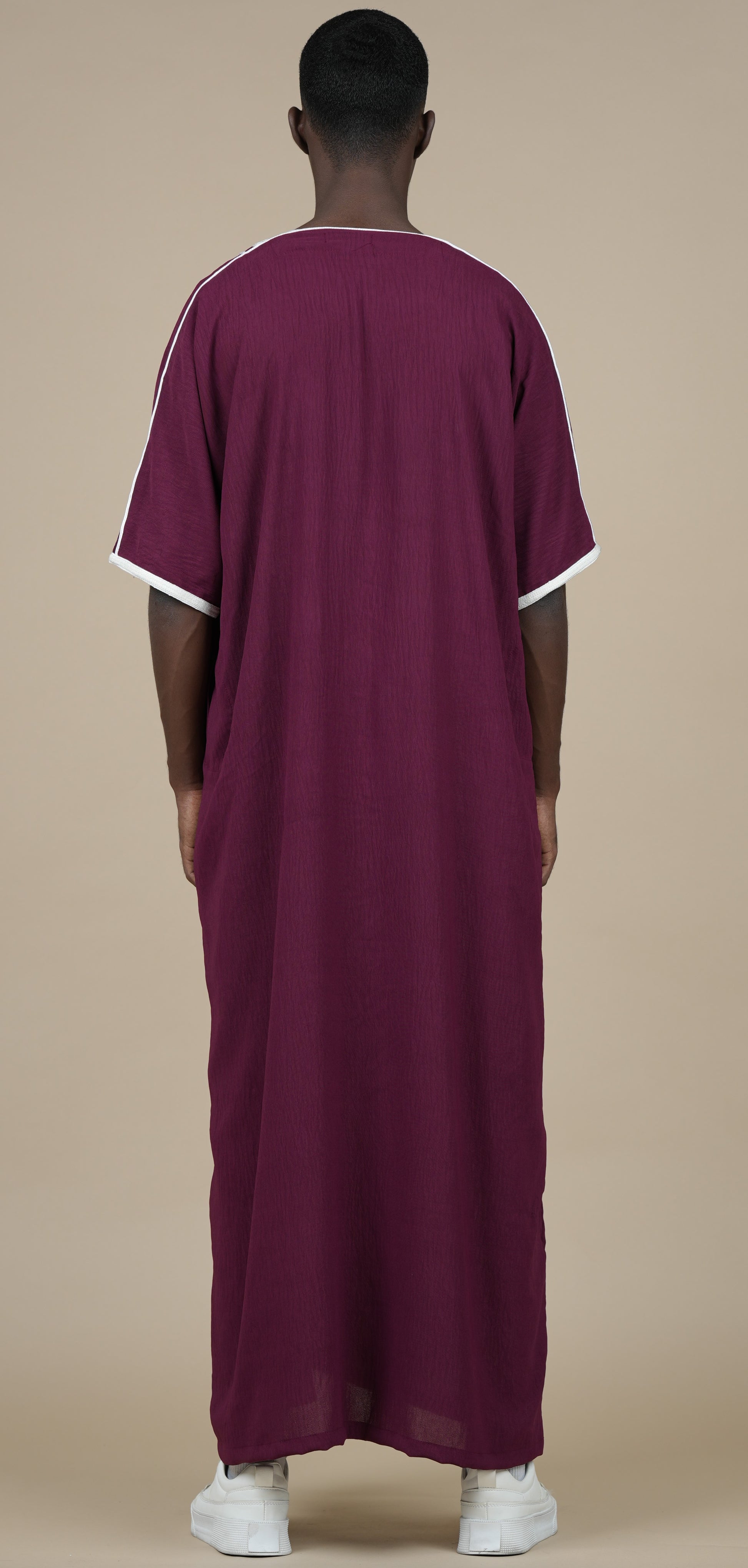 The best materials were used to make this elegant Moroccan thobe, but what really jumps out are the meticulous details of the tailor-made embroidery designs. This one-of-a-kind piece includes embroidery that begins at the shoulders and spreads to the chest region, the sleeves, and the bottom.
