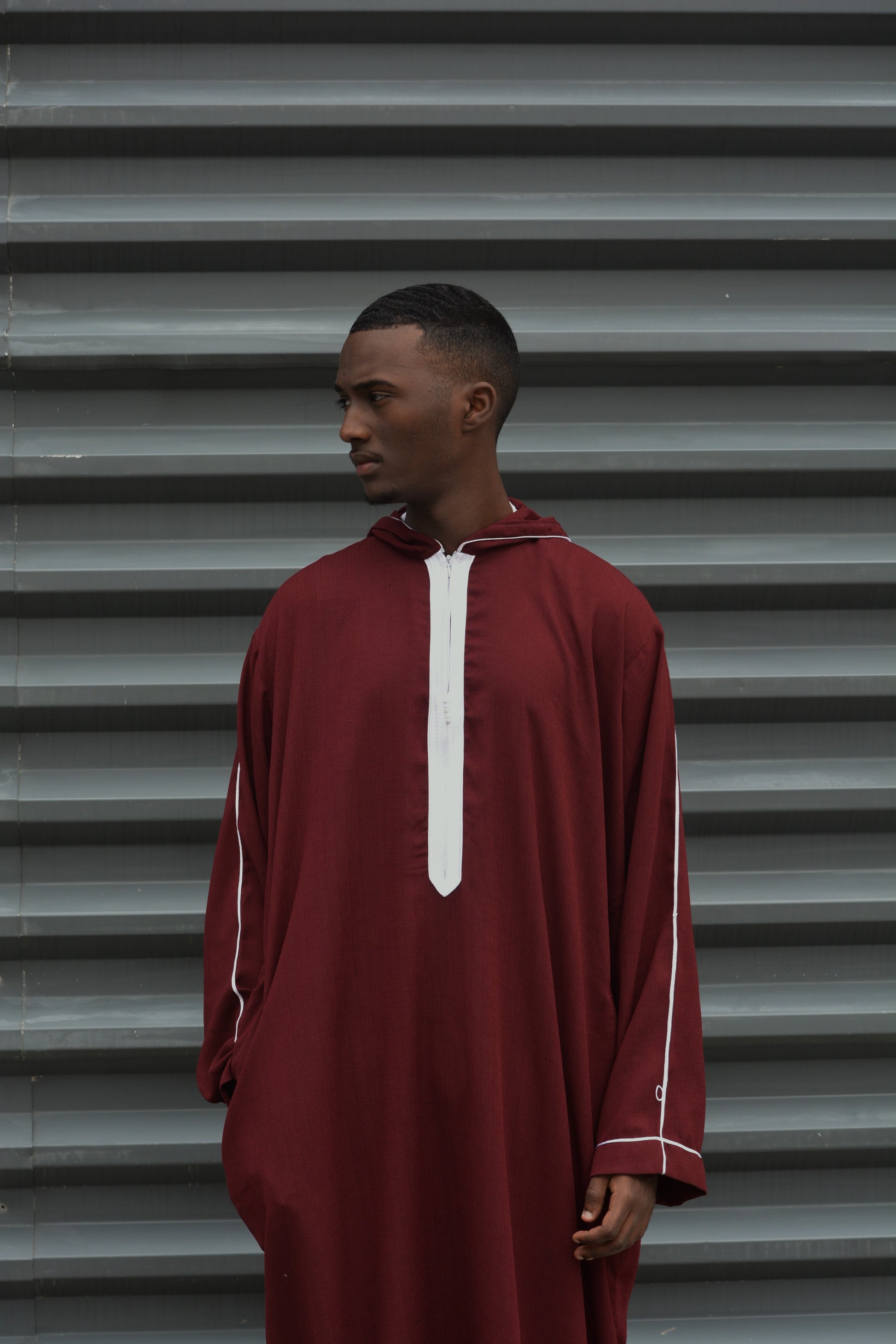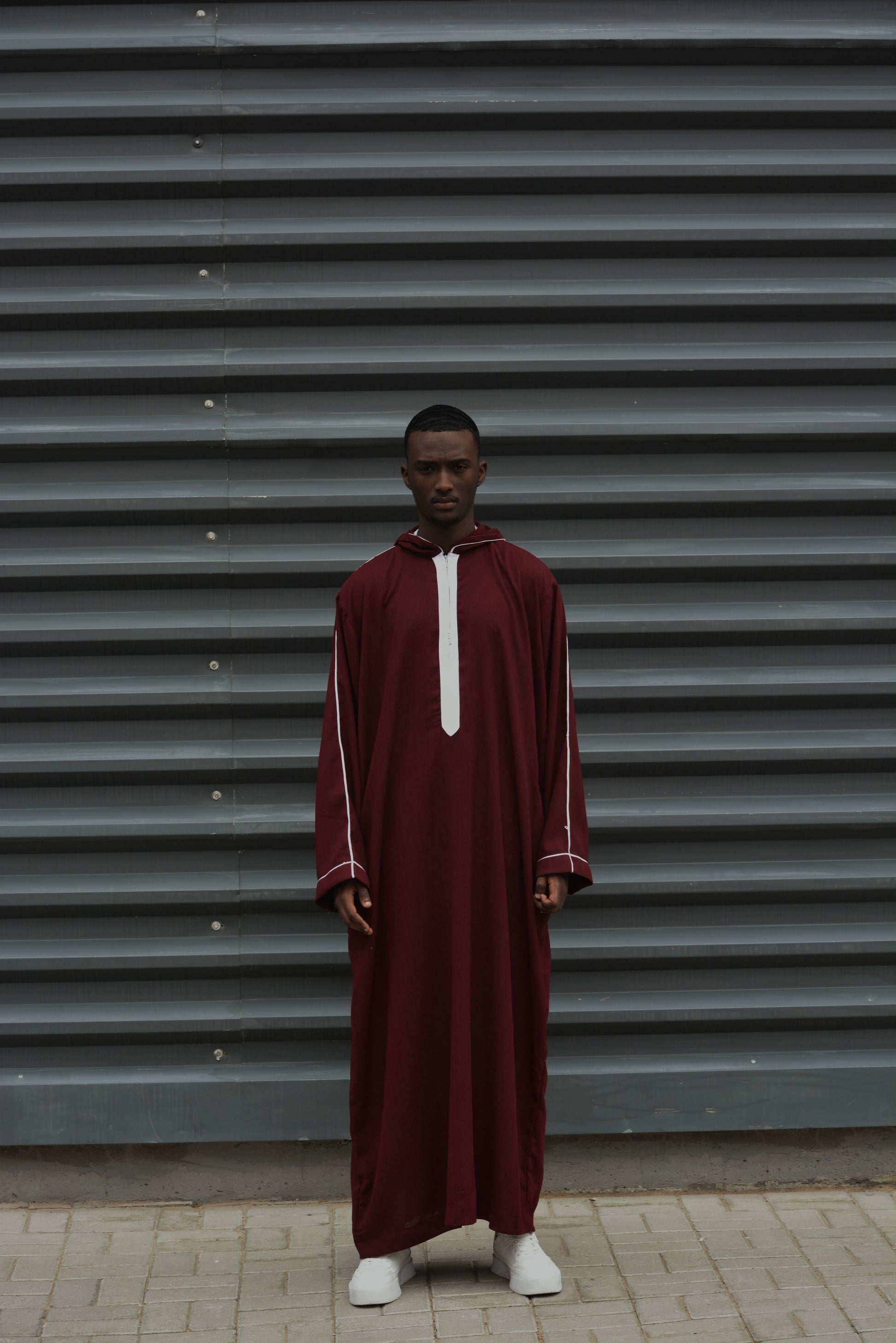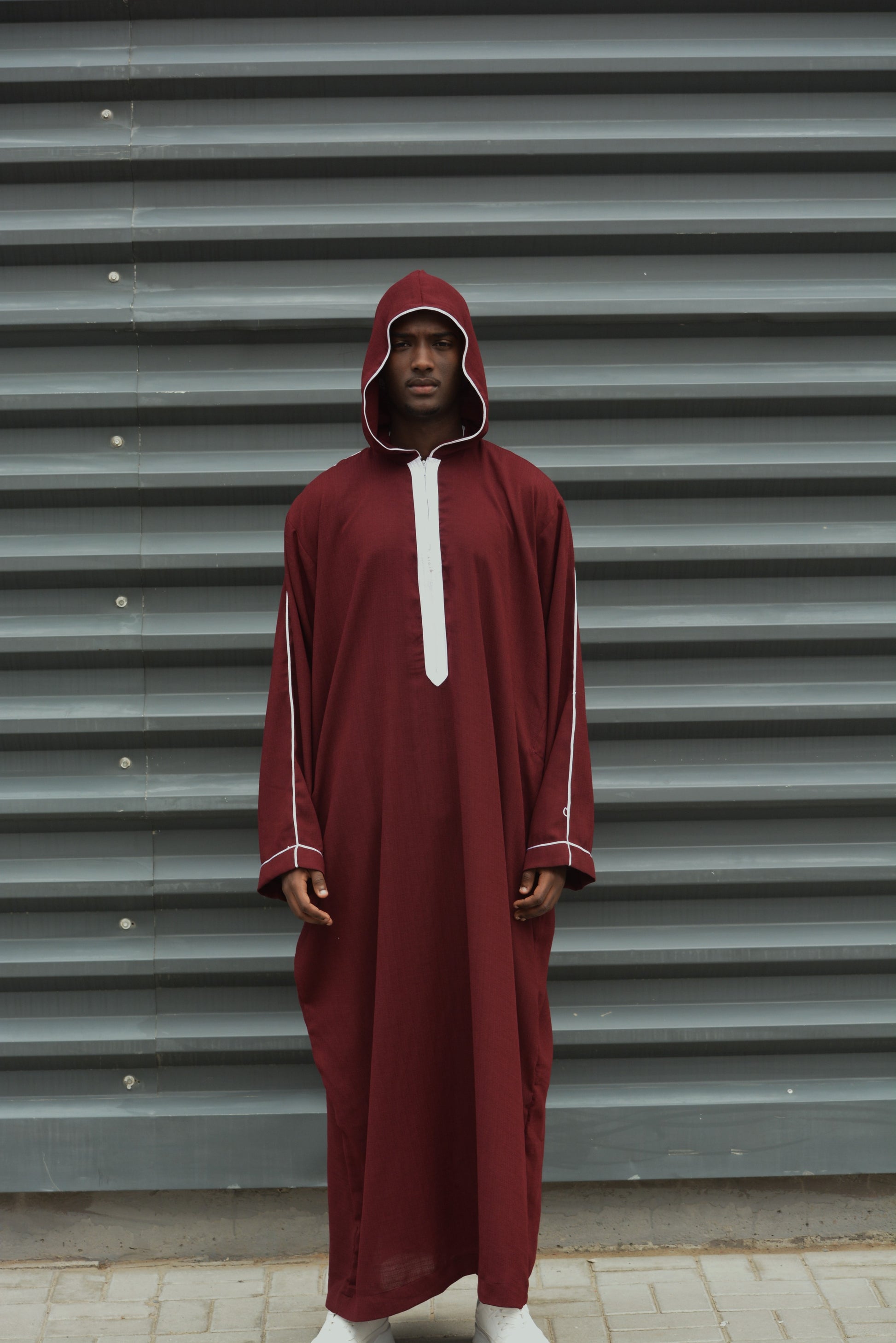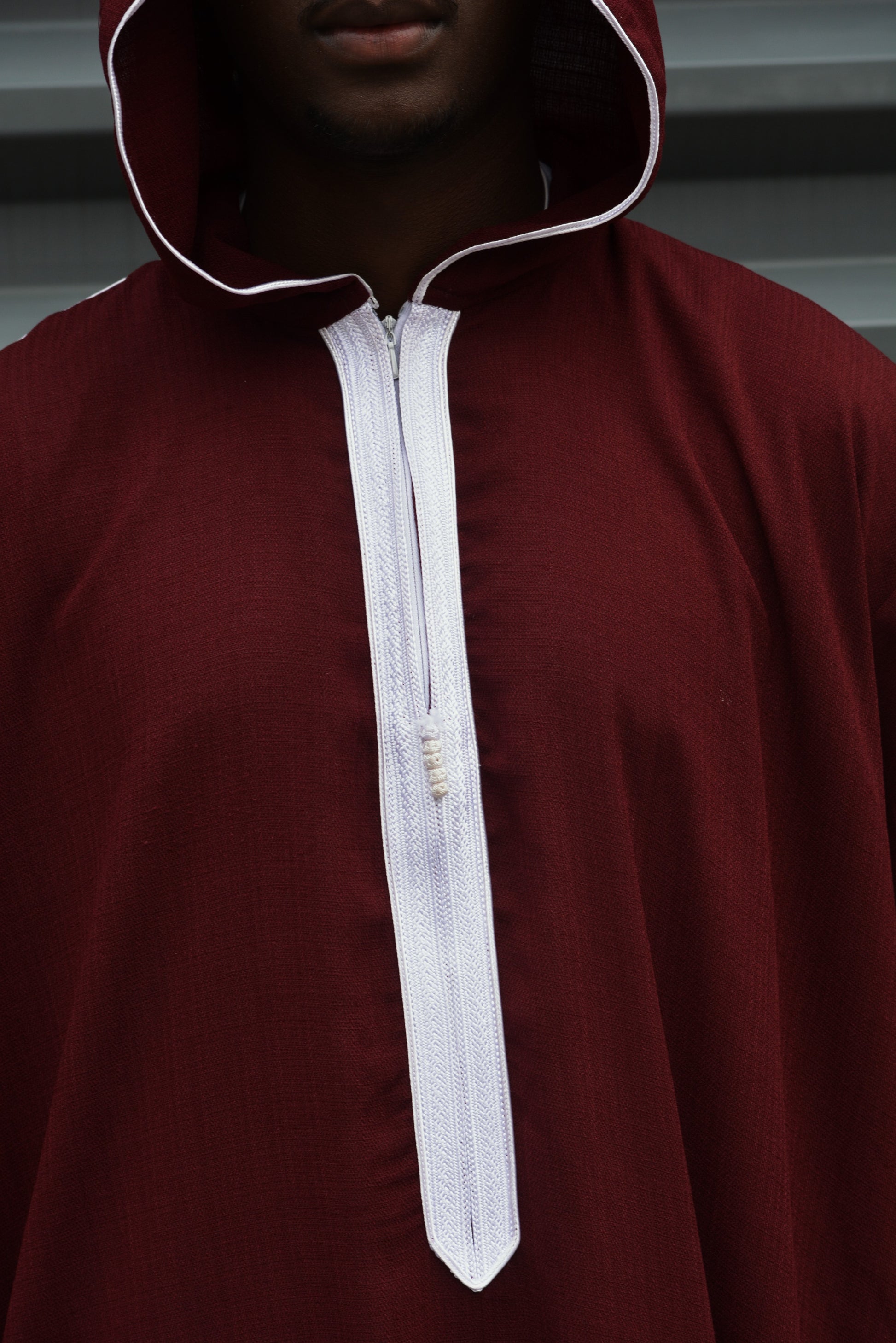 The best materials were used to make this elegant Moroccan thobe, but what really jumps out are the meticulous details of the tailor-made embroidery designs. This one-of-a-kind piece includes embroidery that begins at the shoulders and spreads to the chest region, the sleeves, and the bottom.
