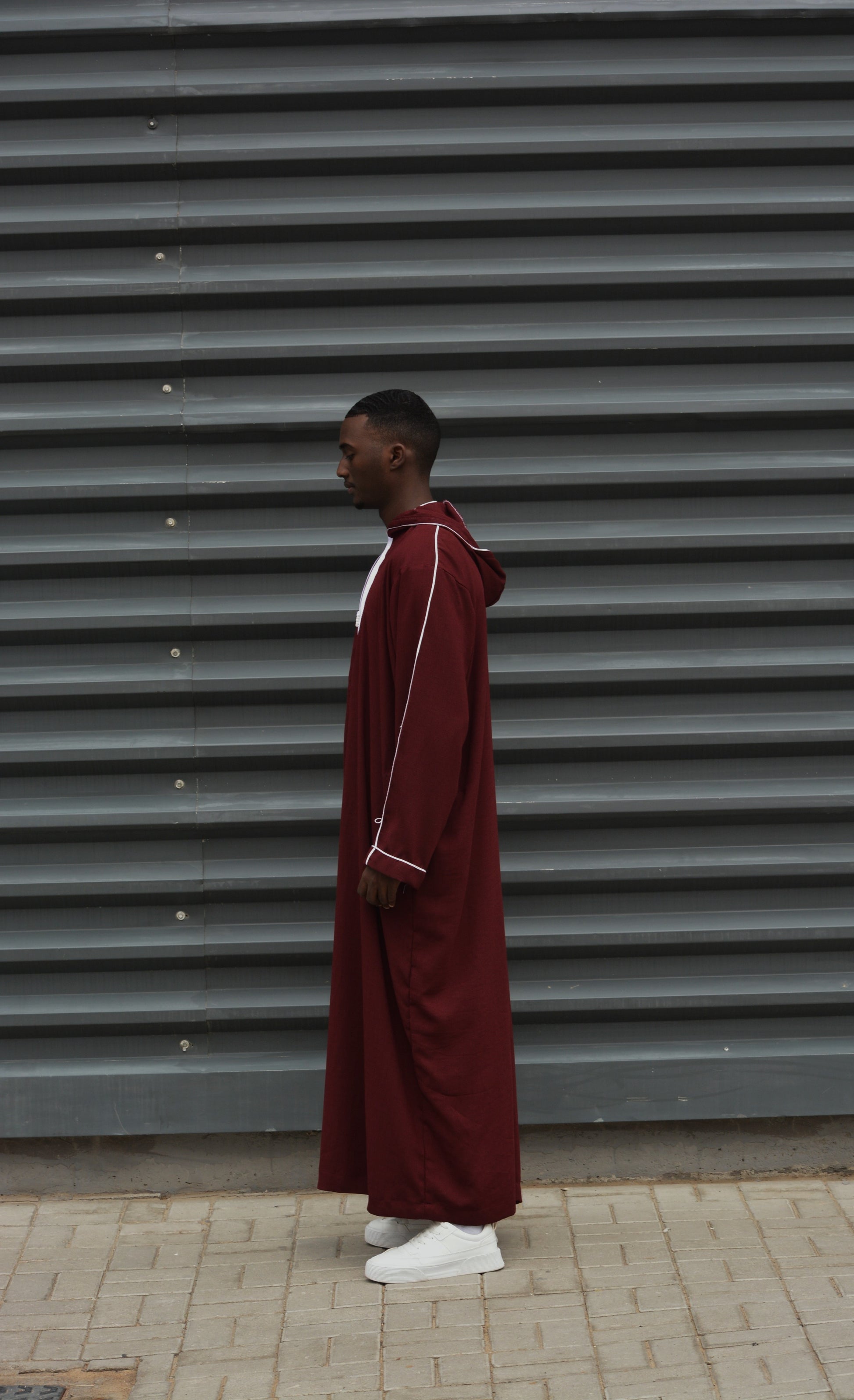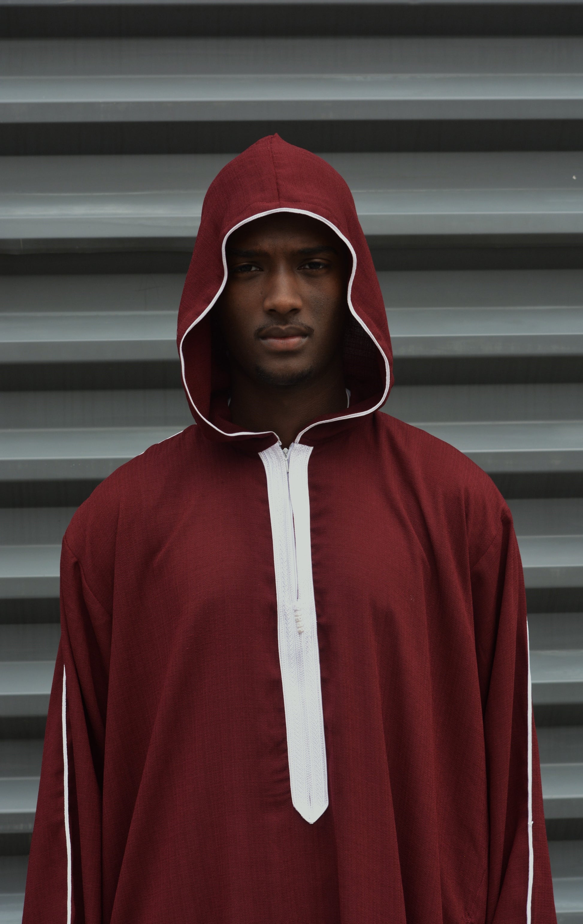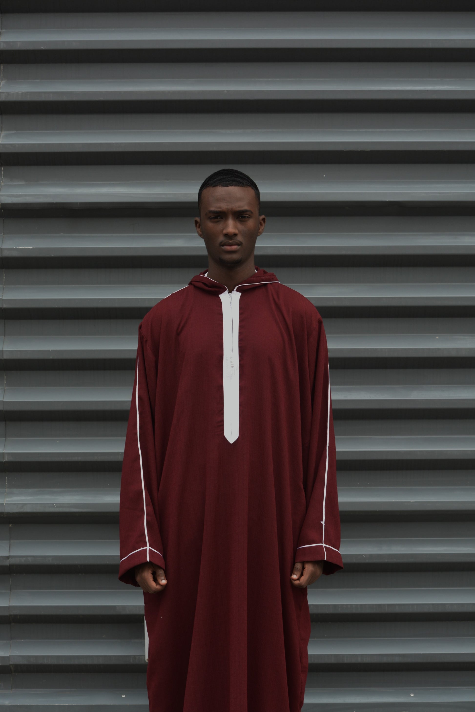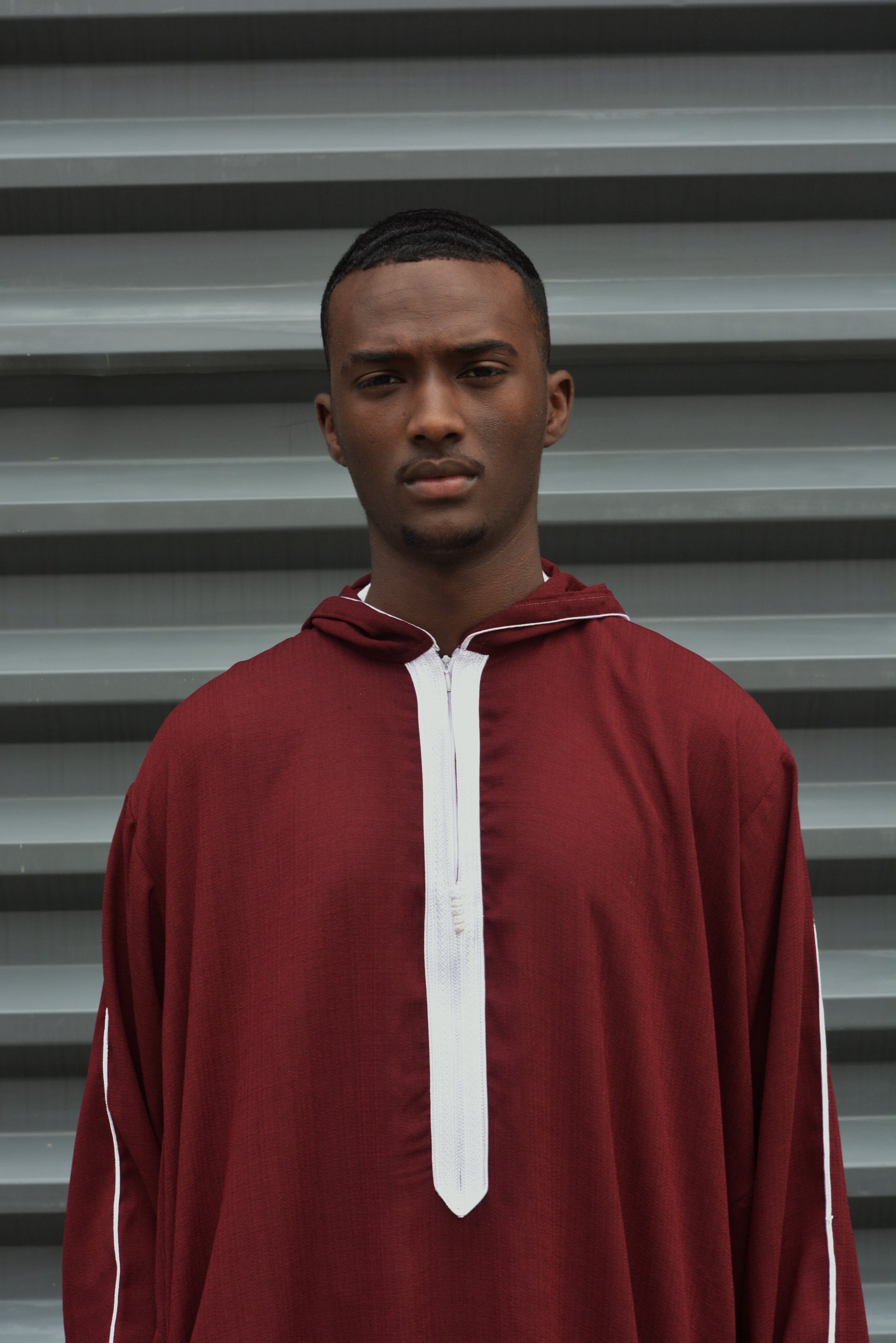 The best materials were used to make this elegant Moroccan thobe, but what really jumps out are the meticulous details of the tailor-made embroidery designs. This one-of-a-kind piece includes embroidery that begins at the shoulders and spreads to the chest region, the sleeves, and the bottom.