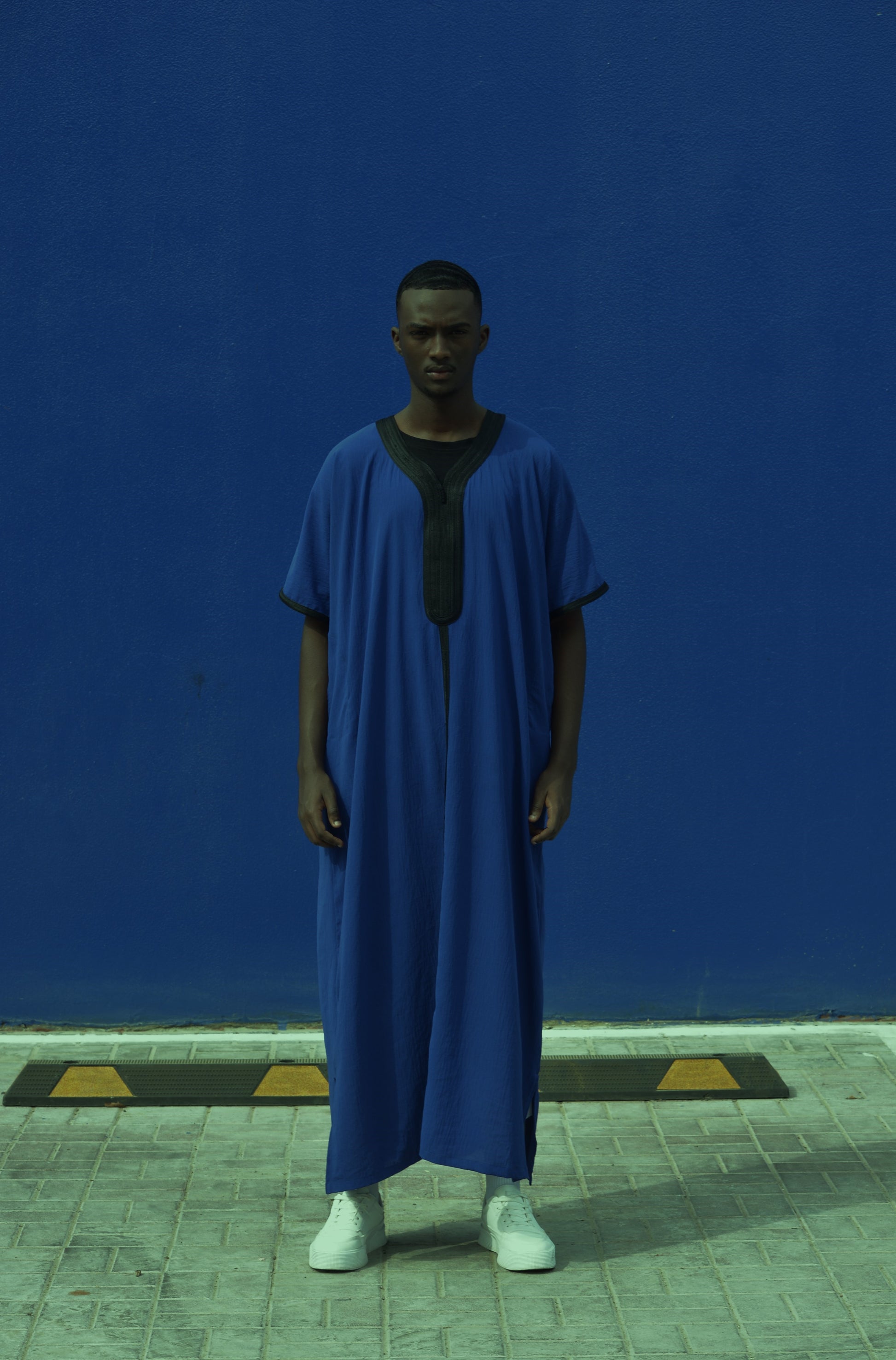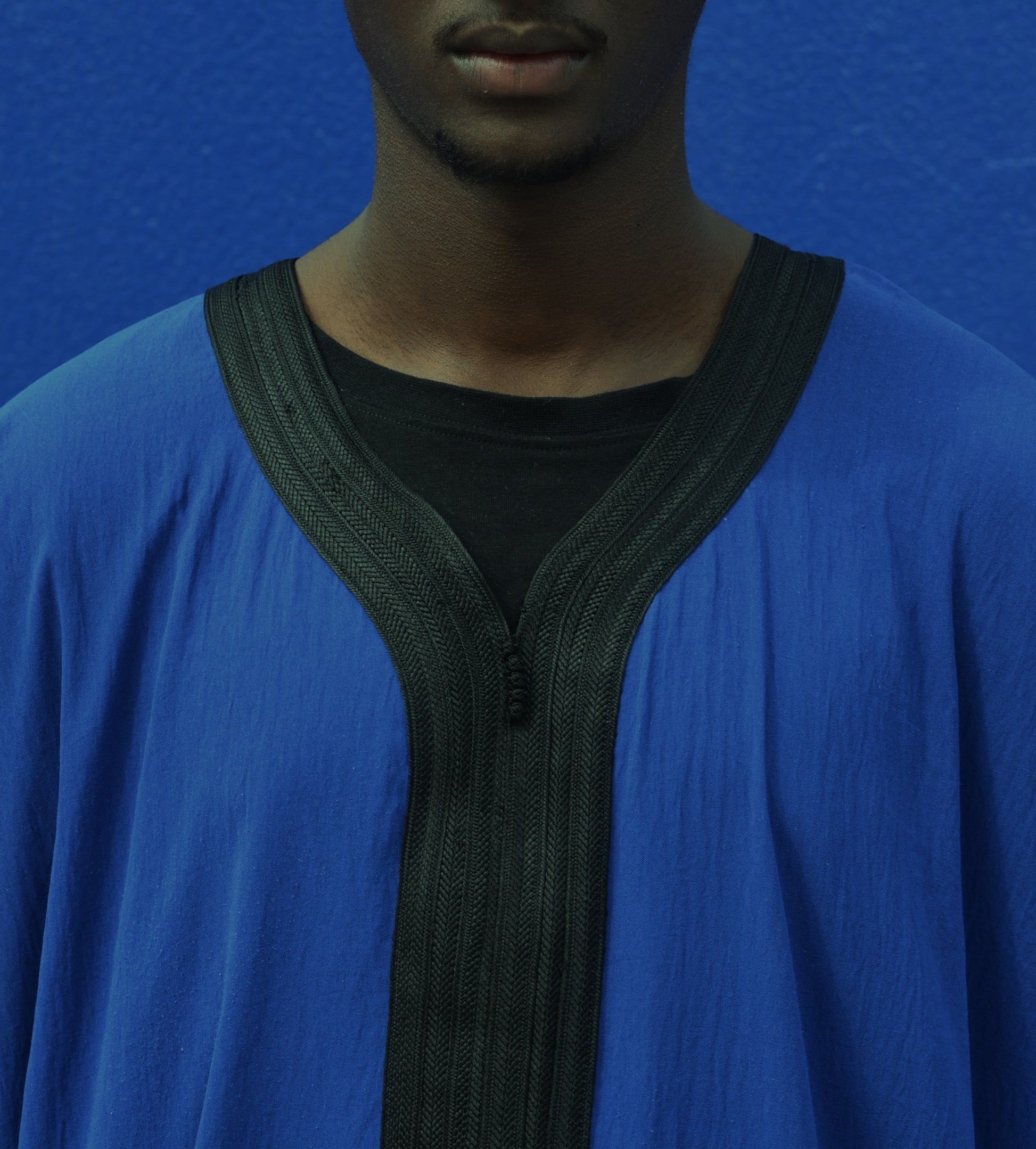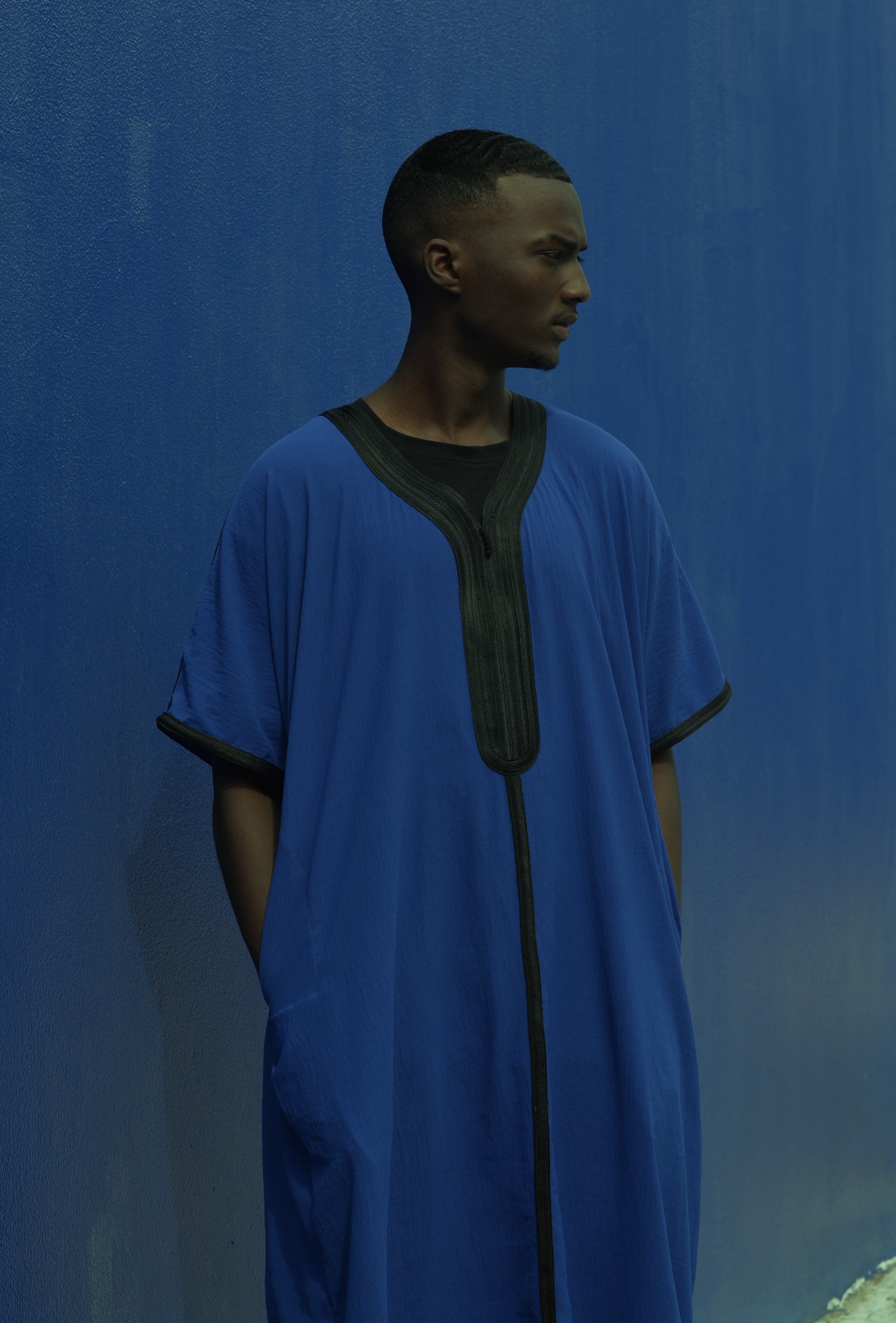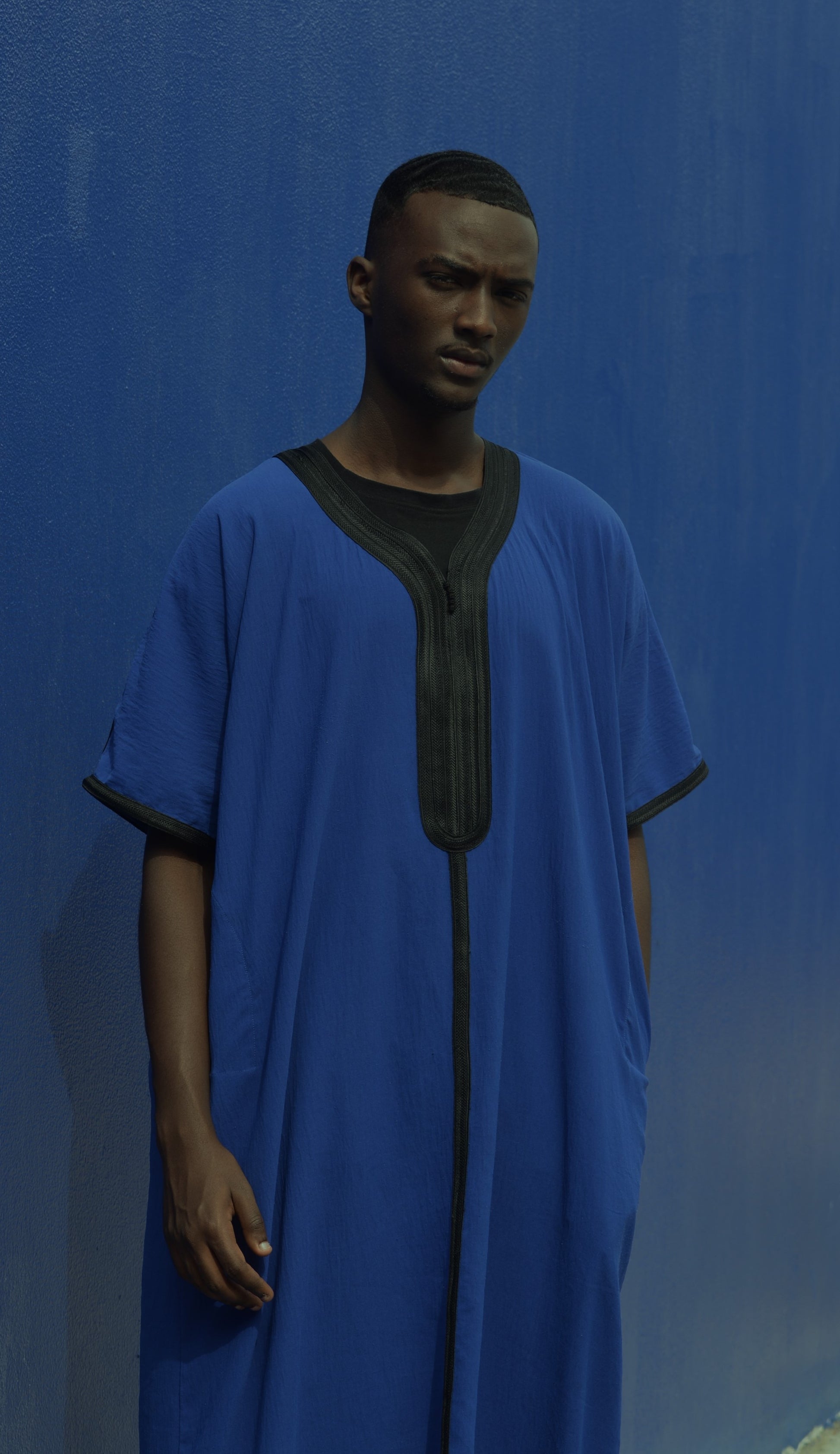 The best materials were used to make this elegant Moroccan thobe, but what really jumps out are the meticulous details of the tailor-made embroidery designs. This one-of-a-kind piece includes embroidery that begins at the shoulders and spreads to the V-neck, the chest region, the sleeves, and the bottom.