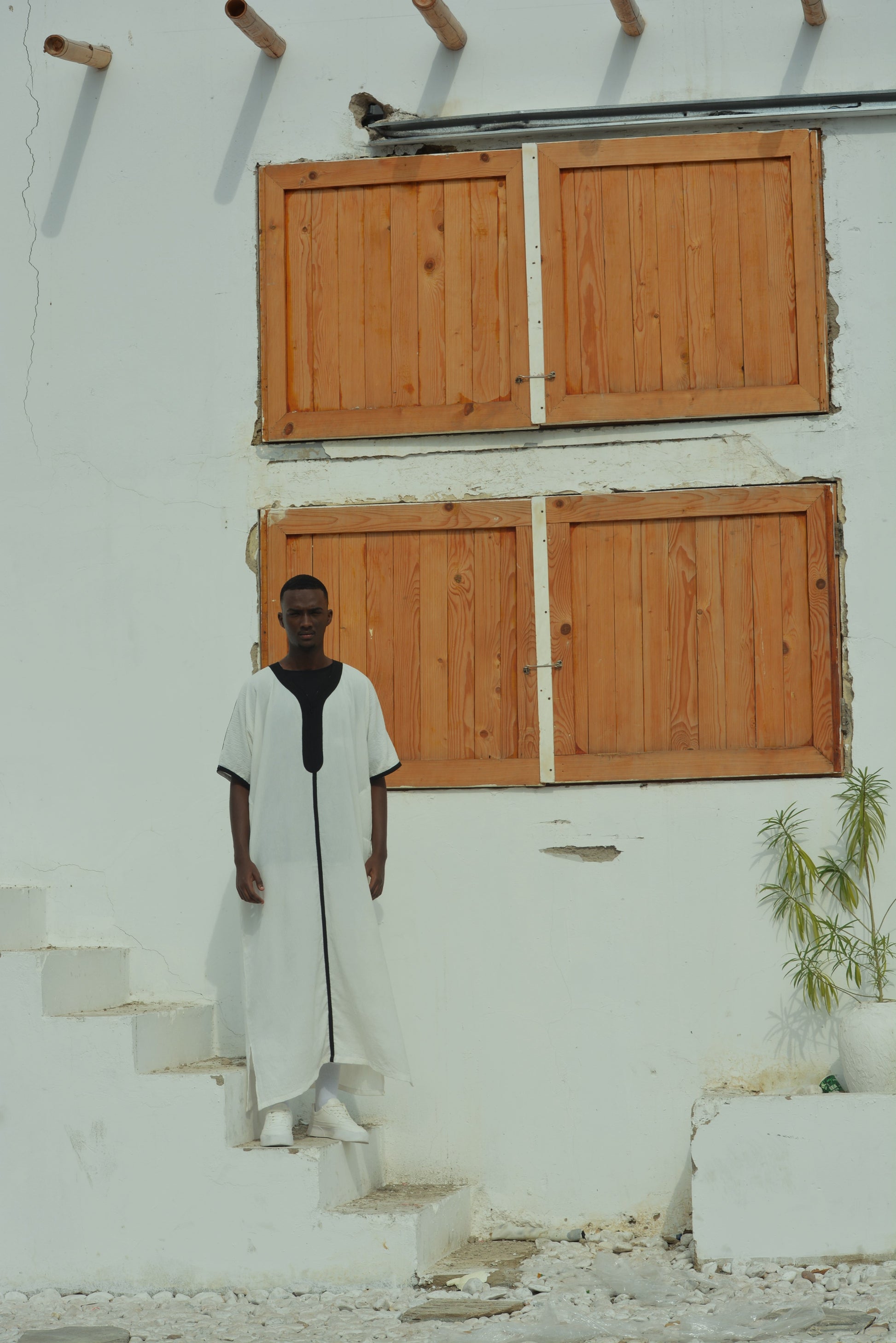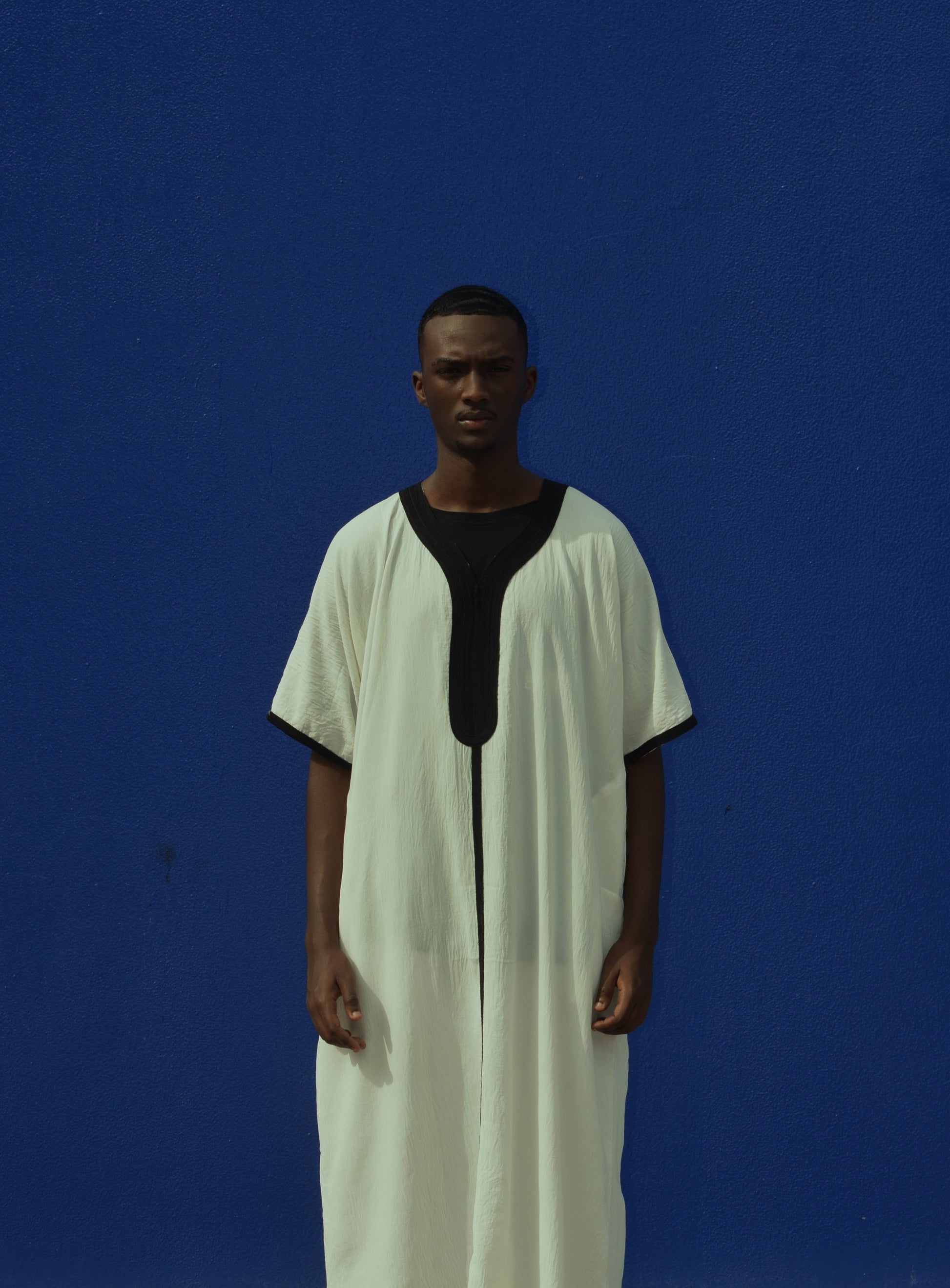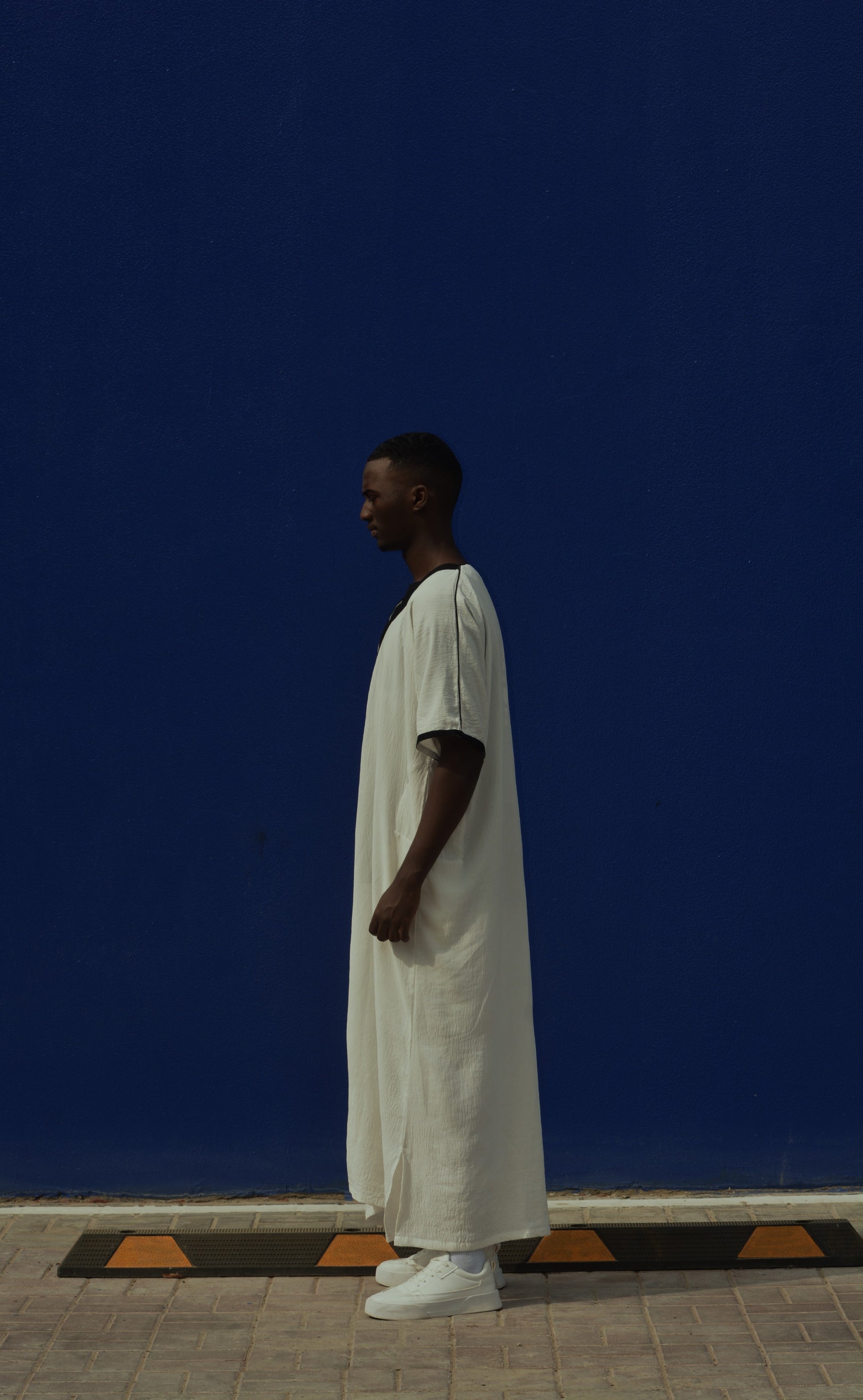 The best materials were used to make this elegant Moroccan thobe, but what really jumps out are the meticulous details of the tailor-made embroidery designs. This one-of-a-kind piece includes embroidery that begins at the shoulders and spreads to the V-neck, the chest region, the sleeves, and the bottom.